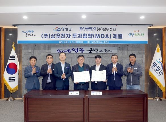 (정도일보) 영광군은 지난 4월 23일 알루미늄 부품 생산업체인 (주)삼우전자(대표 김동수)와 투자협약(MOA)을 체결했다.