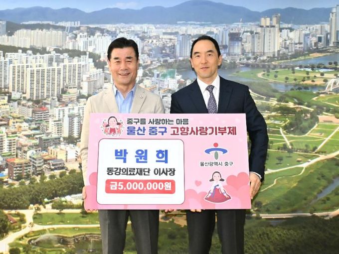 (정도일보) 박원희 동강의료재단 이사장이 4월 25일 울산 중구에 고향사랑기부금 500만 원을 기탁했다.