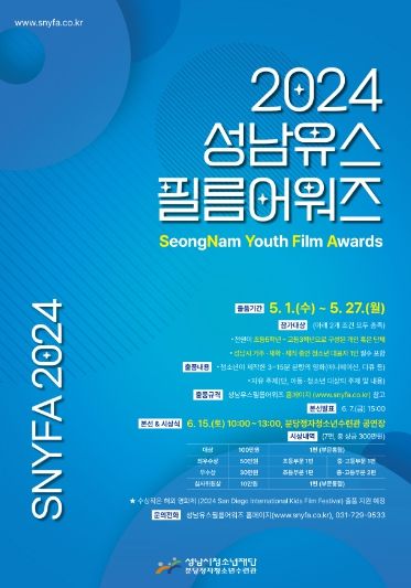 (정도일보) 성남시청소년재단 분당정자청소년수련관은 5월 1일부터 청소년영화제 성남유스필름어워즈의 출품작을 공모한다.