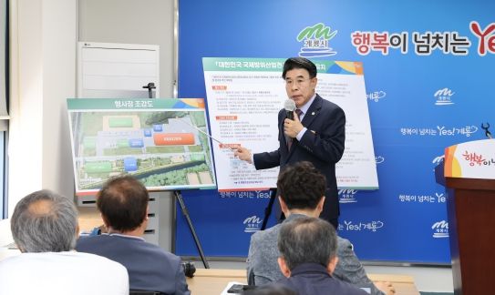 (정도일보) 이응우 계룡시장은 26일 시청 언론 브리핑룸에서 기자회견을 갖고 ‘KADEX 2024’를 계룡시에 유치했다고 밝혔다.