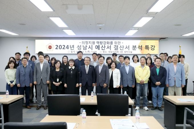 (정도일보) 성남시의회는 9일 오후 의회 4층 세미나실에서 성남시의회 의원과 직원을 대상으로 의정 지원 역량 강화를 위한‘2024년 성남시 예산서·결산서 분석 특강’을 실시했다.