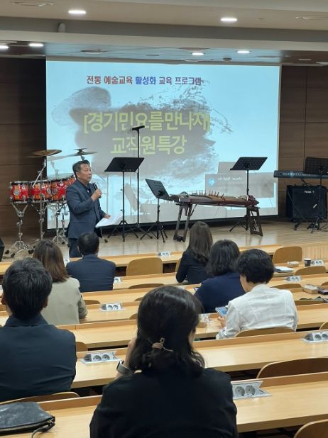 (정도일보) 성남교육지원청은 5월 9일 전통 예술교육 활성화를 위한 [경기민요를 만나자] 교직원 연수를 운영했다. [경기민요를 만나자] 교직원 연수는 전통 예술교육의 교실 확산 및 수업 담당 교원의 전문적 전통예술 역량을 강화하고자 실제 수업 사례 중심의 특강으로 진행됐다.
