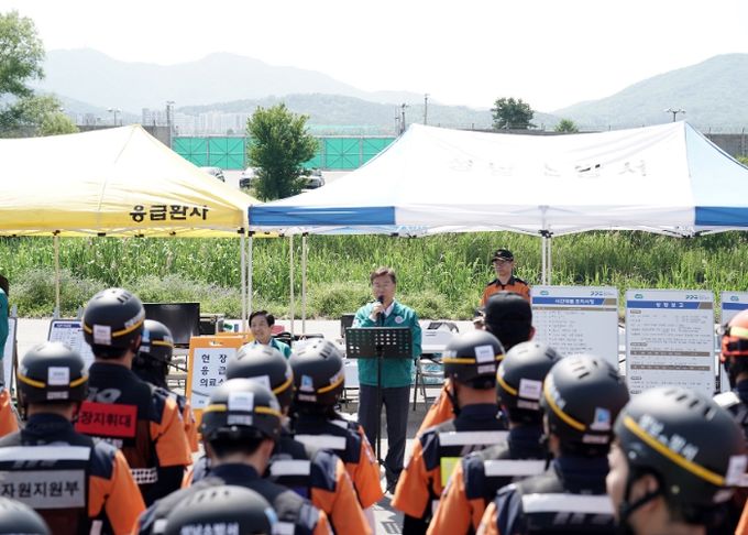특히 탄천 범람에 따른 인명구조 시범훈련도 병행해 응급처치, 환자 분류, 신속한 이송체계에 대한 연습을 실전과 같이 진행했다.