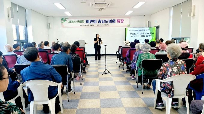 (정도일보) 충남도의회 이연희 의원(서산3·국민의힘)이 12일 서산 지곡노인대학에서 어르신들을 대상으로 특강을 진행했다.