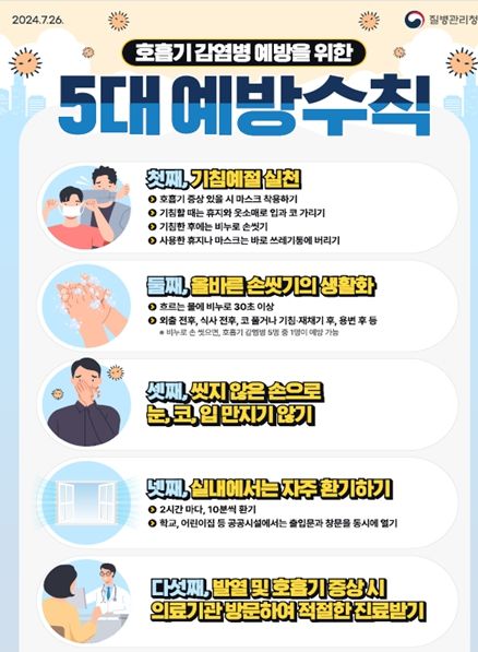 수인성·식품매개감염병을 예방하기 위해서는 △음식을 충분히 익히기 △위생적으로 조리하고, 물은 끓여서 마시기 △흐르는 물에 비누로 30초 이상 깨끗하게 손 씻기 등의 위생 수칙을 준수해야 한다.