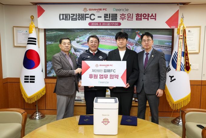 (정도일보) 재단법인 김해FC가 지역 내 혁신 기업과의 파트너십을 통해 구단 경쟁력 강화와 지역 상생이라는 두 마리 토끼 잡기에 나섰다. 김해FC는 20일, 가정용 음식물처리기 전문 브랜드인 ‘린클(Reencle)’과 공식 후원 협약을 체결했다고 밝혔다. 이번 협약은 김해FC의 중장기 발전 5대 전략 중 하나인 브랜드 협력 프로젝트의 핵심 사업, ‘아이언 유니티 네트워크(Iron Unity Network)’ 구축의 일환으로 성사됐다.