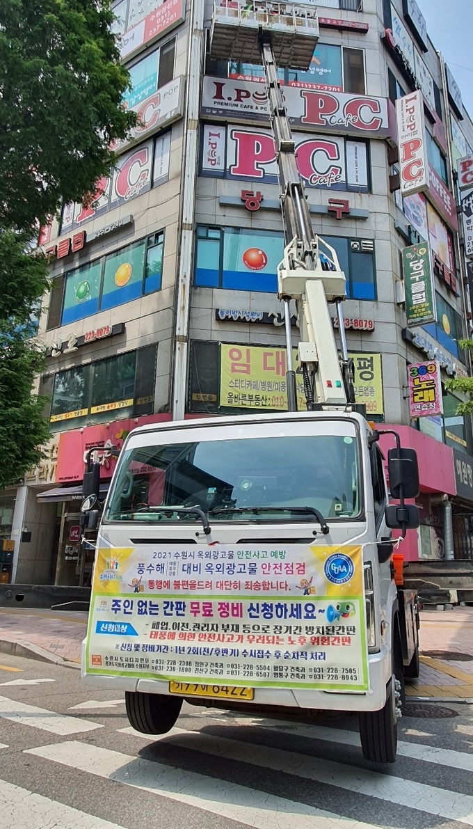 수원시에 설치된 옥외광고물 안전점검을 추진해 여름철 풍수해(태풍·호우 등으로 인한 재해)로 인한 사고를 예방하고, 시민의 안전·재산을 보호하기 위해 6월 1~30일까지 수원시 관내에 설치된 옥외광고물 19만여 건이 점검 대상이다.