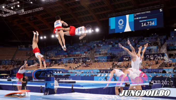 신재환은 2일 오후 일본 도쿄 아리아케 체조경기장에서 열린 남자 기계체조 도마 결선에서 고난도 기술을 선보여 1, 2차 평균 14.783을 기록하고 우승을 차지했다.