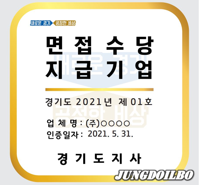 [정도일보 김제영 기자] 경기도가 코로나19로 얼어붙은 고용환경 속에서 청년 구직자들에게 면접수당을 지급한 도내 착한기업 21곳을 ‘2021년도 하반기 면접수당 지급기업’으로 인증했다고 12일 밝혔다.