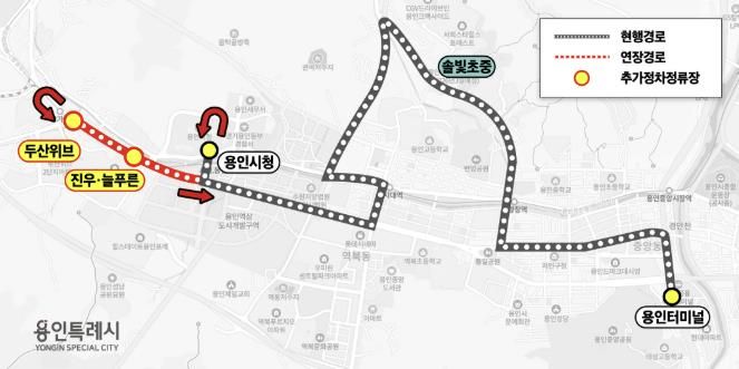 연장에 따라 현대연수원부터 마북동 행정복지센터, 연원마을, 교동마을을 거쳐 구성역까지 운행하던 502번 버스의 기점이 현대연수원에서 ‘단국대·치과병원’으로 변경된다.