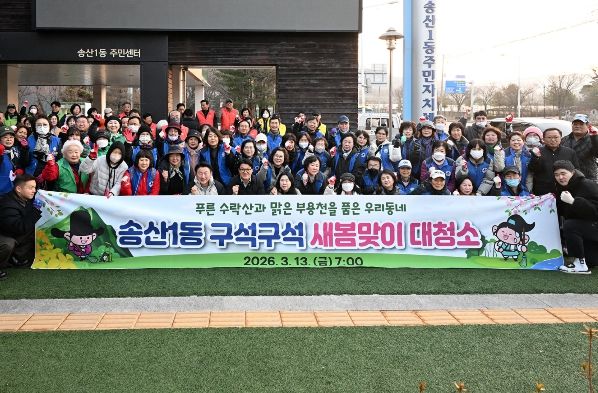 (정도일보) 의정부시 송산1동주민센터는 3월 13일 봄을 맞아 쾌적한 생활 환경 조성을 위해 ‘2026년 새봄맞이 대청소’를 실시했다.