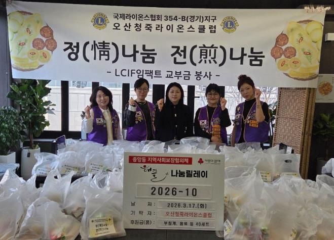 (정도일보) 오산시 중앙동 행정복지센터는 지난 17일 청죽라이온스클럽이 관내 취약계층을 위한 ‘사랑의 전 나눔’을 실천했다고 밝혔다.