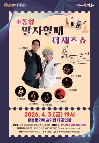 (정도일보) 장흥군은 오는 4월 3일 저녁 7시 장흥문화예술회관 대공연장에서 ‘소통왕 말자 할매 더 재즈 SHOW’ 토크 콘서트를 개최한다고 전했다.