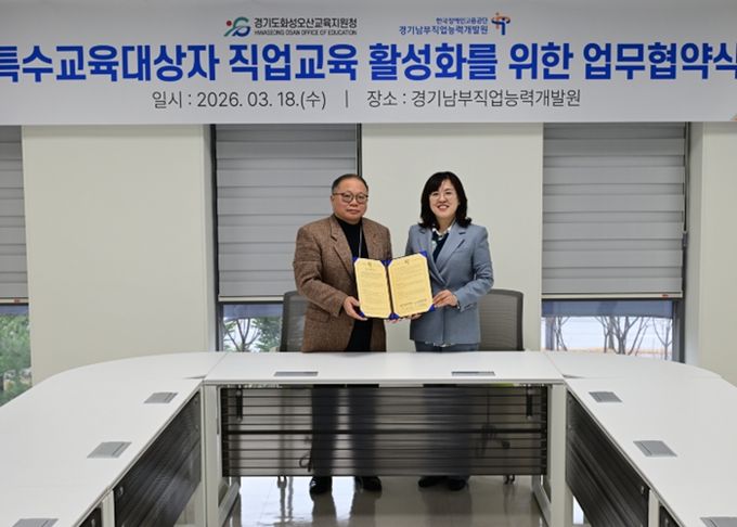 (정도일보) 경기도화성오산교육지원청이 특수교육대상 학생들의 진로직업교육 강화를 위해 한국장애인고용공단 경기남부직업능력개발원과 협력에 나선다.