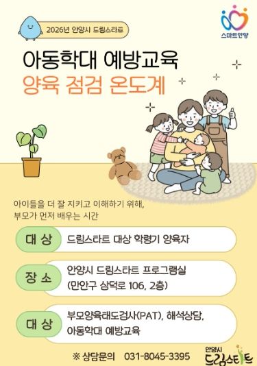 (정도일보) 안양시가 아동 학대를 사전에 차단하고 건강한 양육 환경을 조성하기 위해 맞춤형 부모 교육 프로그램인 ‘2026 드림스타트 양육 점검 온도계’를 본격 가동한다고 18일 밝혔다.