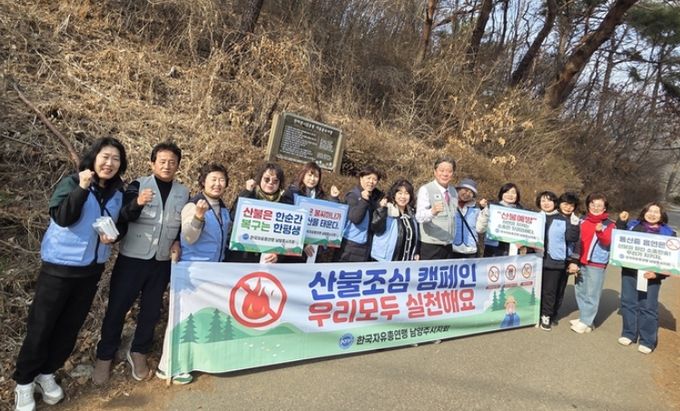 (정도일보) 남양주시는 지난 16일 호평동 천마산 일대에서 한국자유총연맹 남양주시지회 여성회가 봄철 산불 예방과 시민 인식 제고를 위한 산불조심 캠페인을 실시헸다고 19일 밝혔다.