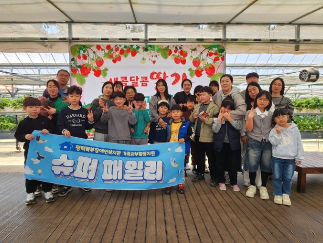 ‘슈퍼패밀리’는 평택시 청북읍에 위치한 딸기 체험장에서 진행됐으며, 오전·오후로 나누어 18가정씩, 총 56명의 가족이 참여했다. 체험은 딸기수확, 딸기 컵케이크 만들기, 딸기간식 시식, 고구마 찾기 등의 다양한 활동이 진행됐으며, 가족과 함께 딸기를 수확하고 컵케이크를 만들며 유대관계를 강화할 수 있는 시간이 됐다.