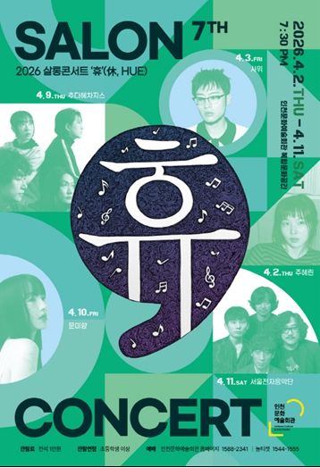 뚜렷한 개성과 깊은 음악성으로 무장한 2026 살롱콘서트 ‘휴’는 전석 1만 원이라는 합리적인 가격으로 운영되며, 인천문화예술회관 누리집 및 놀티켓, 엔티켓에서 예매 가능하다.