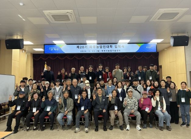 (정도일보) 파주시는 지난 23일 파주시농업기술센터에서 신입생과 관계자 등 70여 명이 참석한 가운데, 미래 농업을 이끌어갈 정예 인재들의 힘찬 출발을 알리는 '2026년 파주농업인대학 입학식’을 개최했다.