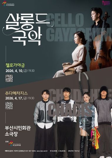 (정도일보) (재)부산문화회관(대표이사 차재근)은 오는 4월 10일, 4월 17일 오후 7시 30분, 부산시민회관 소극장에서 '살롱 드 국악 – 첼로가야금, 추다혜차지스'를 선보인다.
