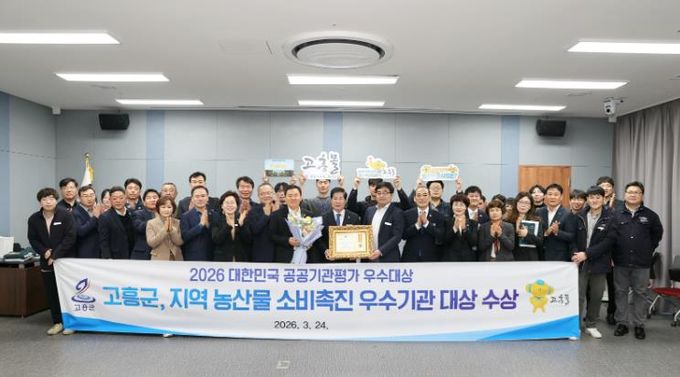 (정도일보) 고흥군은 지난 24일 국회의원회관 대회의실에서 열린 ‘2026년 대한민국 공공기관평가 시상식’에서 지역 농산물 소비 촉진 우수기관으로 선정돼 우수대상을 수상했다고 밝혔다.