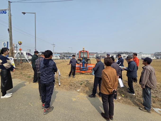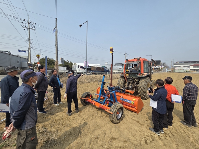 지난 27일 서탄면 수월암리에서 지원받은 레이저 균평기를 활용한 논 균평작업 시연회를 개최함으로써 서탄면 농촌지도자회 회원들이 참석한 가운데 논농사에서 중요한 물관리를 위한 땅의 균평 작업 중요성을 학습하고, 벼 이앙 후 초기 생육과 잡초 관리에 쉽도록 균평기 활용법을 교육받았다.