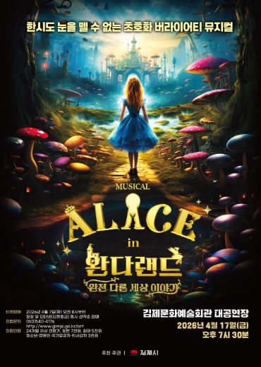 (정도일보) 한시도 눈을 뗄 수 없는 초호화 버라이어티 뮤지컬! '이상한 나라의 앨리스 : 완다랜드'가 오는 17일 오후 7시 30분 김제문화예술회관 대공연장에서 펼쳐진다.