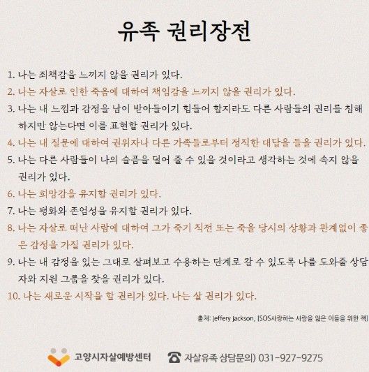 이에 센터는 자살유족을 위한 애도상담, 애도지원 프로그램, 자조모임 운영, 치료비 지원 연계 등 다양한 지원사업을 추진하고 있다.