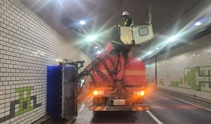 영통구는 26일 터널 청소기와 고압 살수 장비로 매여울지하차도·법원지하차도 등 5개 지하차도를 세척했다. 또 사색공원(원천동)에 맨발길을 조성하고, 쉼터를 조성하는 등 정비사업을 최근 준공했다.