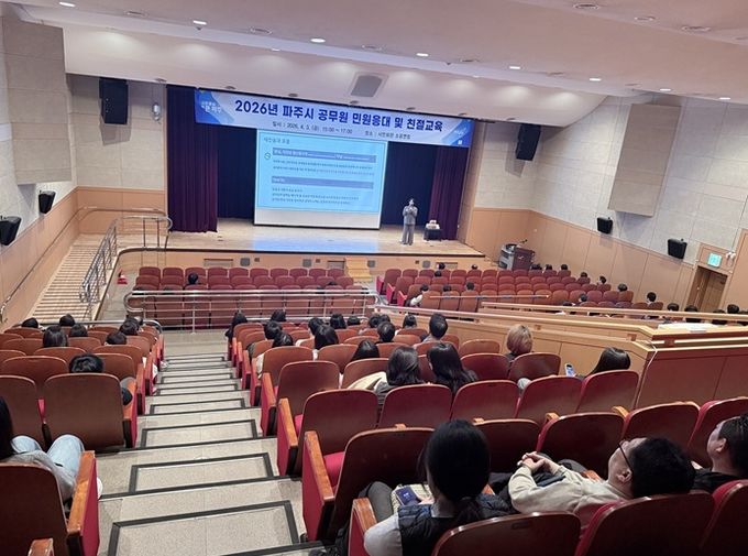 (정도일보) 파주시는 지난 3일 파주시민회관 소공연장에서 민원 담당 공무원 220명을 대상으로 민원 응대 역량 강화를 위한 녪년 파주시 공무원 민원응대 및 친절교육’을 실시했다.