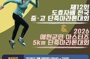 (정도일보) 예천군은 오는 8일 오전 10시부터 예천읍 일원에서 '제12회 예천 도효자배 전국 중·고 단축마라톤대회' 및 '2026 예천군민 마스터즈 단축마라톤대회'를 개최한다고 밝혔다. 한국육상 중장거리 유망주 발굴에 중추적 역할을 해온 도효자배 대회는 고등부 10km, 중등부 5km 코스의 단축마라톤 대회로 개인전과 단체전 두 부문으로 나눠 치러지며, 한국중·고육상연맹과 예천군육상연맹이 공동으로 주최·주관한다. 특히 이번 대회는 코로나 팬데믹 이후 7년 만에 재개되는 예천군민 마스터즈 5km 단축마라톤 대회가 함께 열려 엘리트 중·고 선수 300여 명과 군민 마스터즈 500여 명이 어우러진 마라톤 축제의 장이 펼쳐질 전망이다. 대회 일정은 오전 10시 고등부, 오전 11시 30분 중등부 순으로 진행되며, 군민 마스터즈 대회는 오전 11시 35분에 출발 총성을 울릴 예정이다. 마라톤코스는 청소년수련관(출발)-개심사지교차로-천지원아파트-예천교-제방도로-예천여고-예천스타디움(도착)으로 구성되며, 대회 중 해당 구간 도로가 일부·일시 통제되고 예천교에서 우신강변아파트까지 이어지는 제방도로는 전면 통제된다. 예천군 관계자는 “이번 대회는 엘리트 마라톤 대회에 주민