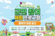 (정도일보) 부안군 대표축제추진위원회(위원장 김종문)는 오는 5월 2일부터 5일까지 4일간 부안 해뜰마루 지방정원에서 개최되는 제13회 부안마실축제 군민 참여 체험 프로그램 운영자를 공개 모집한다고 밝혔다. 공고기간은 4일부터 오는 18일까지이며 접수는 오는 16일부터 18일까지 3일간 방문 또는 우편으로 신청받는다. 신청조건은 부안만의 특색있고 독창적인 체험 부스 운영이 가능한 개인, 동호회, 사회단체 등 부안군민이면 누구나 신청 가능하다. 기타 자세한 사항은 부안군청 홈페이지 고시.공고란을 참고하면 된다. 김종문 위원장은 “제13회 부안마실축제를 다채롭게 만들어줄 체험 부스 모집에 군민들의 많은 관심과 참여를 부탁드린다”고 말했다.