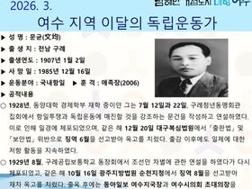 여수시, 2026년 3월의 독립운동가 ‘문균(文均)’ 선생 선정