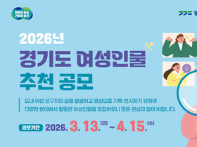 [정도일보 김제영 기자] 경기도여성비전센터는 4월 15일까지 ‘2026년 경기도 여성인물’을 모집하고, 선정된 4명의 활동 영상을 전시한다고 13일 밝혔다. 모집 대상은 경기도민이거나 경기도에 연고를 두고 여성·인권, 농업·환경, 사회복지·돌봄·봉사, 사회운동, 문화·예술, 교육·공학, 의료·안전, 지역경제·소상공업, 기업·경영 등의 다양한 분야에서 성취를 보인 여성이다. 올해 발굴 예정인 인물은 ▲남성 중심 분야에서 큰 성과를 거둔 분야별 1호 여성 ▲후학 양성, 여성 인재 지원 등 자신의 경험과 자원을 다음 세대에 전수한 여성 ▲새로운 분야를 개척하거나 지역사회 내 진취적 활동으로 긍정적인 영향을 미친 청년 여성 등이다. 센터는 이들의 삶과 활동을 영상으로 기록하고, 여성활동 온라인전시관(gg.go.kr/woman-gusul)에 전시할 계획이다. 경기도 여성인물 선정은 2021년 처음 시작돼, 현재까지 32명의 여성인물의 삶이 기록·전시됐다. 대표적으로 출판사의 정신을 책으로 이야기하는 사계절출판사 대표 강맑실, 36년 동안 양질의 공공보건의료를 제공한 간호사 김미경, 국내 최초 건축학과 여자 교수 김혜정, 떡의 대중화와 식문화 교육을 위해 노력하는 떡