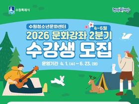 (정도일보) 수원시청소년청년재단(이사장 최종진) 수원청소년문화센터가 오는 4월부터 시작되는 ‘2026년 2분기 문화강좌’ 수강생을 모집하며, 시민들의 일상을 풍요로운 배움으로 채울 준비를 마쳤다.