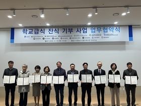 [정도일보 고정희 기자] ‘수원시 학교급식 잔식 기부사업’에 참여하는 학교가 기존 8개에서 14개로 늘어난다. 수요처도 2개 기관에서 8개 기관으로 증가한다. 수원시는 19일 농수산물도매시장 관리동 대회의실에서 신규 참여기관과 업무협약을 체결하고, 적극적인 협력을 약속했다. 신규 참여기관은 다솔·당수초등학교, 권선중학교, 망포·매향여자정보·조원·천천·한봄고등학교 등 8개 학교와 서호·수원·수원YWCA·우만·청솔·효경의손길 등 6개 재가노인지원서비스센터이다. 협약에 따라 8개 학교는 학교급식 잔식 기부에 협력하고, 6개 재가노인지원서비스센터는 학교급식 잔식을 기부받아 도움이 필요한 이웃에 전달하는 역할을 한다. 학교급식 잔식 기부사업은 학교급식에서 배식하지 않고 남은 음식을 먹거리 취약계층에 지원해 돌봄 사각지대를 해소하고, 식량자원을 순환하는 사업이다. 수원시와 수원교육지원청·수원지속가능발전협의회·수원시자원봉사센터, 8개 초중고등학교, 광교종합사회복지관·우만종합사회복지관은 지난해 8월 협약을 체결하고, 9월 2일부터 12월 12일까지 학교급식 잔식 기부 시범사업을 운영한 바 있다. 31차례에 걸쳐 밥·국·반찬 등 1만 3866팩과 후식 2019개를 먹거리 취