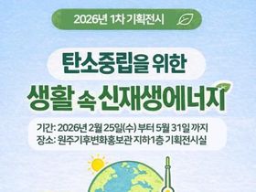 (정도일보) 원주기후변화홍보관은 2월 25일부터 5월 31일까지 기획 전시 ‘탄소중립을 위한 생활 속의 신재생에너지’를 개최한다.