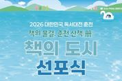 [정도일보 최명구 기자] 국내 최대 독서문화 축제인 ‘2026 대한민국 독서대전’의 개최지를 알리는 ‘2026 대한민국 책의 도시 선포식’이 23일 오후 2시, 강원도 춘천시 ‘상상마당’ 사운드홀에서 열린다. 22일 문화체육관광부와 춘천시에 따르면 이번 행사는 한국출판문화산업진흥원과 함께 지역의 독서 문화를 확산하기 위해 2014년부터 매년 공모로 ‘대한민국 책의 도시’를 선정하고, 9월 독서의 달에 전국 규모의 독서 축제인 ‘대한민국 독서대전’ 개최를 지원하고 있다. 2026년 ‘대한민국 책의 도시’로 선정된 춘천시는 총 41개관에 달하는 시립도서관, 작은 도서관 등 탄탄한 독서 기반시설을 바탕으로 다양한 독서 프로그램을 운영해 왔다. 한국지역도서전과 춘천 도서전 등도 열어 지역 작가와 출판 생태계를 활성화하고 독서 문화 확산에 힘써 왔으며, 김유정 문학촌 등 지역의 문화·관광 자원을 연계한 독서 문화 환경을 조성해 높은 평가를 받았다. 특히 도심 어디에서든 걸어서 15분이면 도서관을 이용할 수 있는 ‘15분 도서관 생활권’을 구축(2023년~2030년)하고 있으며, 올해는 만 10세부터 14세까지를 위한 전용 도서관 등 2개 도서관을 추가로 개관할 예정이