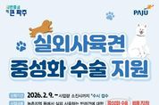 (정도일보) 파주시는 실외에서 사육되는 반려견의 무분별한 번식을 예방하고 유실·유기 동물 발생을 줄이기 위해 녪년 실외사육견 중성화수술 지원사업’을 2월 9일부터 추진하고 있다. 해당 사업은 농촌지역 등에서 마당이나 울타리 안에서 기르는 5개월령 이상의 반려견을 대상으로 중성화 수술비를 지원하는 사업이다. 이를 통해 무분별한 번식으로 인한 유기견 발생을 사전에 차단하고, 개체 수를 효율적으로 관리하는 것을 목표로 한다. 지원 대상은 파주시 농촌지역 등 실외에서 반려 목적으로 개를 사육하는 시민이며, 신청하려면 거주지 관할 행정복지센터 또는 파주시농업기술센터 3층 동물관리과를 방문하면 된다. 대상자로 선정되면 지정 동물 병원과 사전 협의를 거쳐 중성화 수술을 진행하게 된다. 올해 사업 규모는 총 180마리로, 1마리당 최대 40만 원(암컷 기준)까지 지원하며 가구당 10마리 이내로 제한된다. 특히 기초생활수급자, 차상위계층, 65세 이상 고령자는 우선 지원 대상이다. 이광재 동물관리과장은 “실외사육견 중성화수술 지원사업은 유기견 증가를 예방하고 시민 불편을 줄이는 데 크게 기여할 것”이라며 “동물 복