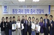 (정도일보) 수원시 팔달구는 지난 20일 구청 상황실에서 지역 사회 발전을 위해 헌신하는 통장들의 사기 진작과 노고를 격려하기 위한 ‘2026년 상반기 통장 자녀 장학 증서 전달식’을 개최했다. 이번 장학 증서 전달식은 행정의 최일선에서 주민과 소통하며 구정 발전에 기여 해 온 통장들의 자녀 중, 학업 성적이 우수하고 타의 모범이 되는 학생 6명을 장학생으로 선발해 수여했다. 장학금은 지역 사회를 위해 봉사하는 통장들의 노고에 보답하고, 자녀들의 학업 정진을 지원하기 위해 마련됐다. 유지현 팔달구 통장협의회장은 “행정과 주민의 가교 역할을 하는 통장들의 노고를 잊지 않고, 이렇게 자녀들을 위한 뜻깊은 자리를 마련해 주셔서 진심으로 감사드린다며, 우리 통장들은 앞으로도 큰 자긍심을 가지고 팔달구의 발전과 주민 화합을 위해 더욱 앞장서서 봉사하겠다”고 소감을 밝혔다. 황규돈 팔달구청장은 “지역 사회의 크고 작은 일들을 묵묵히 도맡아 주시는 통장님들의 헌신적인 노력이 있었기에 지금의 살기 좋은 팔달구가 있는 것이며, 오늘 전달된 장학금이 자녀들이 지역 사회를 이끄는 훌륭한 인재로 성장하는 데 작은 밑거름이 되길 바라