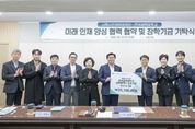 (정도일보) 시흥시인재양성재단은 지난 3월 19일 시청 다슬방에서 한국공학대학교와 지역인재 장학사업 추진을 위한 업무협약을 체결하고, 산학협력단 내 입주기업들이 조성한 장학기금 총 2,510만 원의 기탁식을 진행했다. 이날 행사에는 (주)릴리아 솔루션, 피티에스와이에스, 메타리버테크놀러지, 엠씨테크닉스, 태성 등 5개 입주기업 대표를 비롯해 시 관계자와 한국공학대학교 총장 등 10여 명이 참석해 지역 인재 양성을 위한 협력 의지를 다졌다. 이번 협약은 한국공학대학교 제2캠퍼스(리서치파크) 산학협력관 내에 공정혁신 시뮬레이션센터와 협력하는 입주기업들이 자발적으로 조성한 재원을 지역사회에 환원하고, 이를 관내 초중고 학생 대상 장학사업으로 연계하기 위해 마련됐다. 기탁금은 시흥시 미래인재 양성을 위한 장학 재원으로 활용되며, 재단은 기탁 취지에 맞게 재원을 투명하고 공정하게 관리ㆍ운영할 계획이다. 양 기관은 ▲지역인재 발굴 및 장학지원 확대 ▲산학협력 성과의 지역사회 환원 체계 구축 ▲대학·기업·지역 간 지속 가능한 상생협력 모델 확산 등을 위해 협력하기로 했다. 임병택 시흥시장은 “이번 협약은 대학과