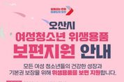 (정도일보) 오산시는 관내 11세부터 18세까지의 여성청소년을 대상으로 '여성청소년 위생용품 보편지원 사업'을 추진한다고 밝혔다. 이번 사업은 여성청소년의 경제적 부담을 완화하고 건강한 성장 환경을 조성하기 위해 생리용품 구입비를 지원하는 사업이다. 다만 여성가족부가 시행하는 기초생활수급자·차상위계층·한부모가족 대상 여성청소년 생리용품 바우처 지원사업과는 중복 지원이 불가하다. 지원 대상은 오산시에 거주하는 11세부터 18세까지의 여성청소년으로, 등록 외국인과 국내거소신고자 등 외국인 청소년도 포함된다. 지원 금액은 1인당 월 1만1,800원, 연 최대 14만2,000원이며 오산시 경기지역화폐 모바일 ‘오색전’으로 지급된다. 지원금은 오산시 내 지역화폐 가맹 편의점인 CU, GS25, 세븐일레븐, 이마트24 등에서 사용할 수 있으며, 배달특급 앱을 통한 온라인 구매도 가능하다. 신청 기간은 2026년 3월 4일부터 예산 소진 시까지이며, 온라인 신청은 3월 4일 오전 10시부터 3월 31일 오후 6시까지 가능하다. 신청은 경기민원24 온라인 신청 또는 주소지 관할 행정복지센터 방문을 통해 할 수 있