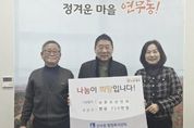 (정도일보) 수원시 장안구 연무동은 지난 19일, 상광교상인회 소속인 광교헌농원, 백운주말농장, 폭포농원, 형제농원, 자선농원 5개소가 행정복지센터를 방문해 어려운 이웃을 위한 성금 150만원을 기탁했다고 밝혔다. 광교헌농원, 백운주말농장, 폭포농원, 형제농원, 자선농원은 평소에도 광교산을 찾는 등산객과 주민들에게 건강한 먹거리를 제공하며 지역 경제 활성화에 기여해 왔으며, 이번 성금 기탁을 통해 지역 사회의 든든한 후원자로서의 면모를 보여주었다. 기탁식에 참석한 상인회 관계자는 “작은 정성이지만 우리 주변의 어려운 이웃들이 희망을 잃지 않고 살아가는 데 조금이나마 도움이 되길 바란다”며, “앞으로도 지역 사회를 위한 나눔 활동에 지속적으로 관심을 갖겠다”고 소감을 전했다. 공순정 연무동장은 “모두가 힘든 시기임에도 선뜻 큰돈을 기부해 주신 광교산 상인회분들께 깊이 감사드린다”며 “기탁해 주신 소중한 성금은 관내 복지 사각지대에 놓인 취약계층을 위해 투명하고 뜻깊게 사용하겠다”고 말했다.