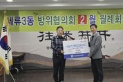 (정도일보) 수원시 권선구 세류3동 방위협의회는 지난 12일, 세류3동행정복지센터를 방문해 불우이웃 돕기 후원금 50만 원을 기탁했다. 이번 후원금은 지역 내 취약계층 및 복지사각지대 가구 지원을 위해 사용될 예정이며, 세류3동행정복지센터는 대상자 발굴 및 맞춤형 복지서비스 연계 등을 통해 실질적인 도움이 될 수 있도록 집행할 계획이다. 방위협의회 회장은 “우리 주변에는 작은 도움에도 다시 힘을 낼 수 있는 이웃들이 있다”며 “이번 후원이 따뜻한 위로가 되길 바라며, 앞으로도 지역과 함께하는 나눔 활동을 꾸준히 이어가겠다”라고 말했다. 이진영 세류3동장은 “어려운 시기에 이웃을 먼저 생각해 주신 방위협의회에 깊이 감사드린다”며 “기탁해 주신 성금은 취약계층 지원을 위해 투명하고 세심하게 집행하겠다”라고 전했다. 한편 세류3동행정복지센터는 지역 내 복지자원과 연계한 지원체계를 바탕으로, 복지사각지대 해소를 위한 상담·발굴 활동을 지속 추진하고 있으며, 주민이 체감할 수 있는 촘촘한 복지안전망 구축에 힘쓰고 있다.