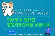 (정도일보) 여수시는 시민 삶에 필요한 맞춤형 평생교육 프로그램을 발굴하기 위해 ‘2026년 평생학습 특성화 강좌 지원사업’을 공모한다고 밝혔다. 이번 사업은 ‘2026년 명품 평생학습도시’ 조성을 목표로 지역 특성과 시대적 교육 수요를 반영한 평생교육 프로그램을 발굴·지원하기 위해 추진된다. 공모 접수는 3월 23일부터 25일까지 3일간 진행되며 여수시 소재 평생교육시설, 법인, 단체를 대상으로 한다. 심사를 통해 총 7개 강좌를 선정하고, 선정된 강좌에는 강사비 최대 230만 원 이내에서 지원할 예정이다. 공모 분야는 ▲지역특화 교육 ▲ESG 시민교육 ▲디지털 활용 교육 ▲직업능력개발 ▲섬박람회 관련 교육 등이다. 여수시는 이번 사업을 통해 지역 특성을 반영한 평생교육 콘텐츠를 확대하고 시민들의 학습 참여 기회를 넓혀 지역사회 역량 강화와 평생학습 문화 확산에 기여할 것으로 기대하고 있다. 공모와 관련된 자세한 사항과 신청 서식은 여수시청 누리집 고시·공고란에서 확인할 수 있으며 문의는 여수시 평생학습관으로 하면 된다. 시 관계자는 “지역 특성과 시대 흐름을