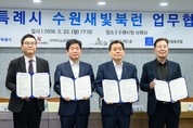 [정도일보 고정희 기자] 수원특례시(시장 이재준)가 어린이·청소년 독서 문화를 확산하는 ‘수원새빛북런’ 사업을 추진한다. 수원시와 ㈜아이스크림에듀, (사)씨드(Seed)숲, 수원시서점협동조합은 23일 시청 상황실에서 ‘수원새빛북런(Book Learn) 업무협약’을 체결하고, 협력을 약속했다. 수원새빛북런은 민간의 우수한 독서교육 콘텐츠로 미래를 이끌어 갈 독서 인재를 키우는 사회공헌사업이다. 4~8월에 독서챌린지 앱·홈페이지에서 독서룰 인증하고, 독후감을 작성하는 ‘수원새빛북런 챌린지’를 진행한다. 9~10월에는 코스튬 퍼레이드, 성곽 걷기, 체험존 운영 등으로 진행되는 ‘수원새빛북런 데이’를 연다. 협약에 따라 수원시는 독서문화 확산을 위한 행정 지원을 하고, (사)씨드숲은 수원새빛북런 사업 운영을 총괄한다. ㈜아이스크림에듀는 독서 인증 챌린지 콘텐츠를 제공하고, 수원시서점협동조합은 지역 서점을 기반으로 한 독서문화프로그램·캠페인 등 독서 행사 개최에 협력한다. 이날 협약식에는 이재준 수원시장과 ㈜아이스크림에듀 대표, (사)씨드숲 사무총장, 수원시서점협동조합 이사장 등이 참석했다. 이재준 수원시장은 “인공지능(AI)을 효율적으로 활용하려면 인공지능이 잘못된