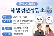 [정도일보 고정희 기자] 수원특례시(시장 이재준)는 12월까지 19~39세 수원 거주 또는 활동 청년을 대상으로 ‘2026 새빛청년상담소’를 운영한다. 법률·노무·세무·부동산 4개 분야 전문가가 청년의 일상 속 고충과 권익 침해 문제를 무료로 상담해 준다. 직장 내 괴롭힘, 임금 체불, 전세 사기, 세금 문제 등 사회진입기 청년이 겪는 현실적인 어려움을 해결할 수 있도록 지원한다. 대면, 온라인 상담을 병행한다. 대면 상담은 수원청년포털에서 예약한 뒤 수원시청년지원센터에서 할 수 있다. 분야별 월 1회 운영하며 1인당 25분간 일대일 상담을 받을 수 있다. 온라인 상담은 수원청년포털 ‘상담 게시판’에 비공개 글로 신청하면 된다. 접수 후 7일 이내에 전문가가 답변한다. 수원시는 3일 수원시청년지원센터에서 상담위원 8명을 위촉했다. 김현수 수원시 제1부시장이 상담위원에게 위촉장을 수여했다. 김현수 제1부시장은 “청년들이 비용 부담 없이 전문가의 도움을 받아 시행착오를 줄이고, 안정적으로 사회에 정착하길 바란다”며 “앞으로도 청년 권익 보호와 실질적인 지원을 강화할 것”이라고 말했다.