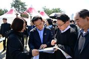 (정도일보) 논산딸기축제를 앞두고 백성현 논산시장과 국·소 실장, 관련부서장이 함께 현장점검에 나섰다. 백성현 논산시장은 축제가 열리는 논산시민가족공원 일원을 둘러보며 축제장 부스와 무대, 통행로 등 전반적인 운영 상황을 꼼꼼히 점검했다. 백성현 논산시장은 “많은 시민과 관광객이 찾는 행사인 만큼 안전을 최우선으로 빈틈없이 준비해 달라”며 “시설물 점검은 물론 동선 관리, 비상 상황 대응체계까지 철저히 갖춰야 한다”고 강조했다. 또한, “방문객 불편이 발생하지 않도록 현장 운영 전반을 다시 한번 면밀히 점검하고, 문제 요소는 즉시 보완하여 논산딸기축제, 나아가 2027논산세계딸기산업엑스포를 대비한 완성도 높은 기반을 마련할 수 있도록 해달라”고 당부했다. 시는 축제 하루 전인 25일 행정안전부, 충청남도와 경찰서, 소방서, 전기안전공사, 가스안전공사, 안전관리자문단 등 유관기관 및 전문가와 함께 축제장 전반에 대한 합동 안전점검을 실시할 계획이다. 아울러 점검 결과에 따라 미비 사항은 즉각 보완해 안전한 축제 운영에 총력을 기울일 방침이다.